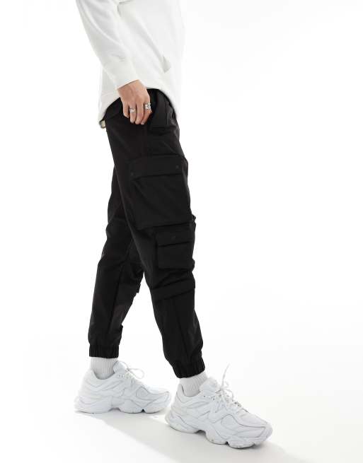 Bershka - Tech cargobroek met zakken in zwart
