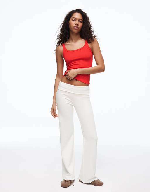 Bershka - Zachte flare-broek met patch in ecru