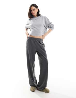 Bershka - Zachte gebreide joggingbroek met wijde pijpen in grijs