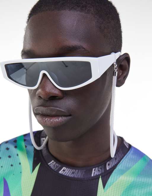 Bershka - Zonnebril met brillenkoord in wit