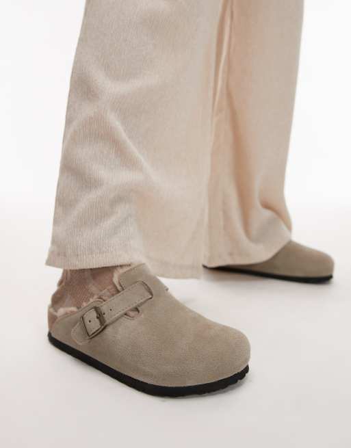 Birkenstock - Boston - Uniseks klompen van suède met voering van schapenvacht in taupe