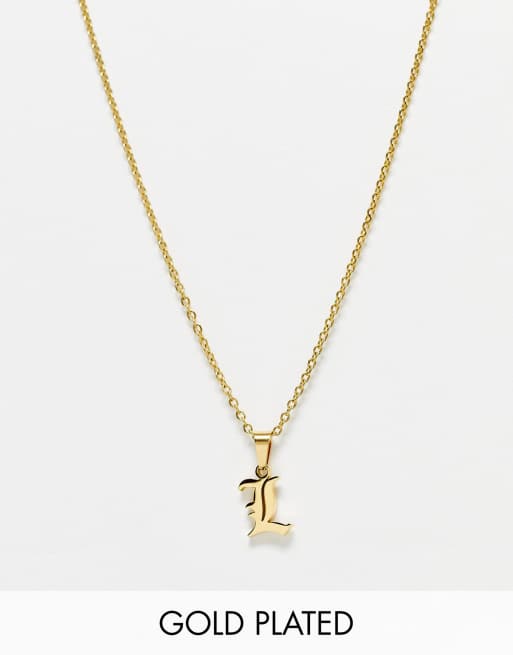 Bohomoon - Met goud vergulde ketting van roestvrij staal met hangertje van gotische letter 'L'