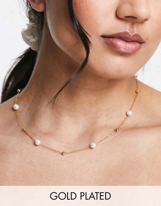 Bohomoon - Paradise - Vergulde ketting van roestvrij staal met pareltjes