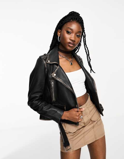 Bolongaro Trevor - Bikerjack van distressed leer in zwart