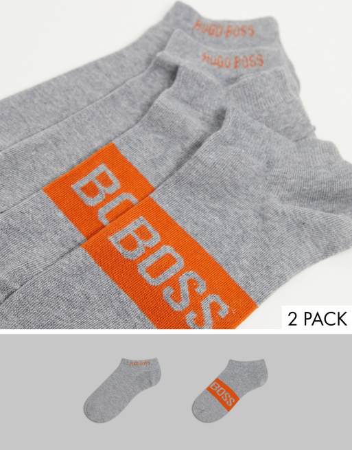 BOSS - Set van 2 paar enkelsokken met groot logo in grijs
