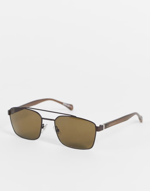 HUGO - Vierkante pilotenbril met metalen montuur en bruine glazen in 1117/S