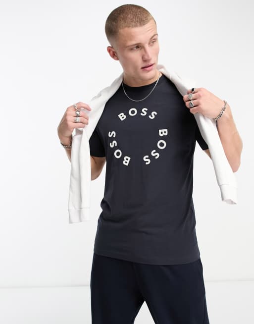 BOSS Green - Tee 4 - T-shirt in marineblauw met circel logo