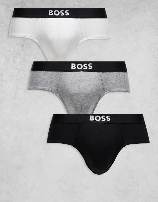 BOSS - Bodywear - Set van 3 onderbroeken met logo aan de voorkant in zwart, wit en grijs