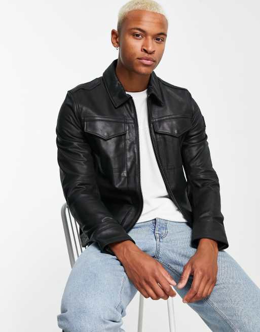 Boss Orange - Jobean - Leren jack met ritssluiting in zwart