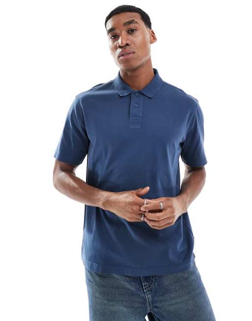BOSS Orange - Pe_Dye - Ruimvallend poloshirt met logo in het midden in blauw