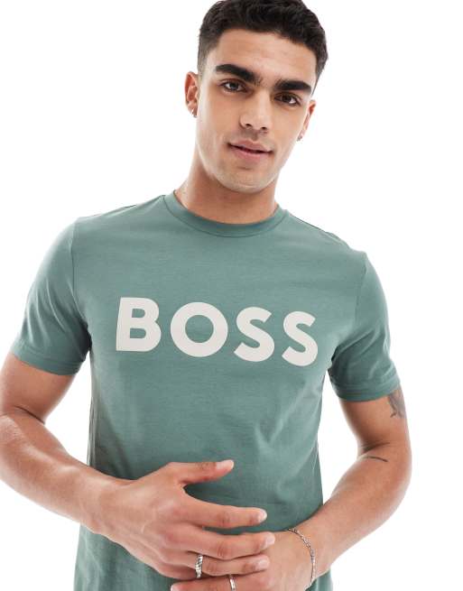 BOSS Orange - Thinking - T-shirt met logoprint in groen