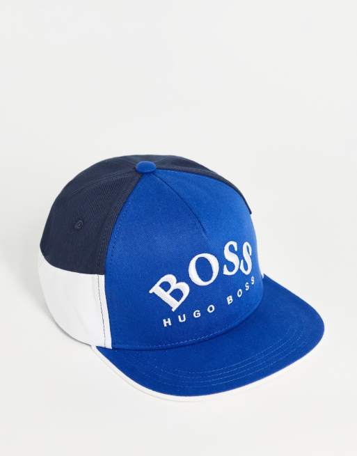 Boss - Snapback pet met groot logo en kleurvlakken in blauw