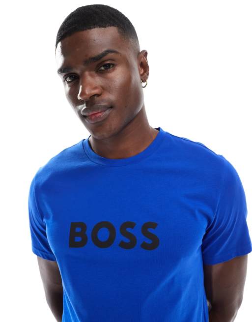 BOSS - T-shirt met logo op de borst in blauw