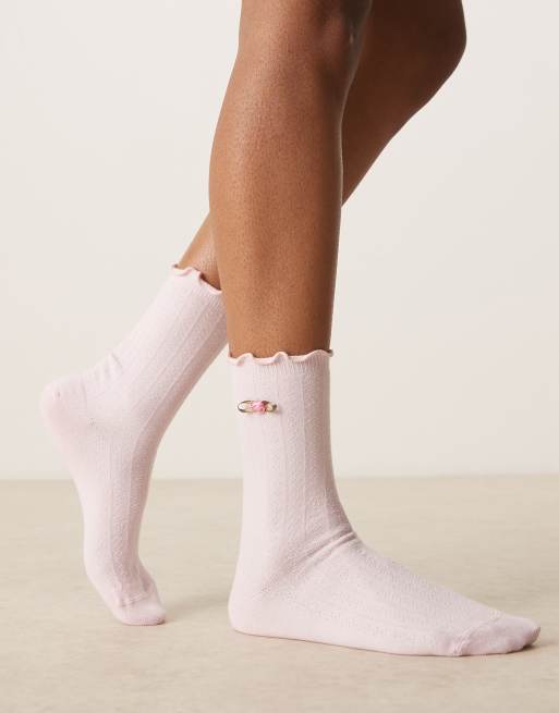 Boux Avenue - Rozenknop pointelle sokken in lichtroze