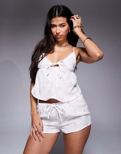 Boux Avenue - Set van kaasdoek met hemdje en shorts met bloemenprint in wit