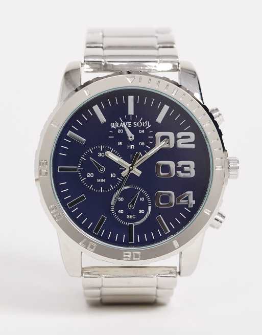 Brave Soul - Armbandhorloge voor heren met blauwe wijzerplaat