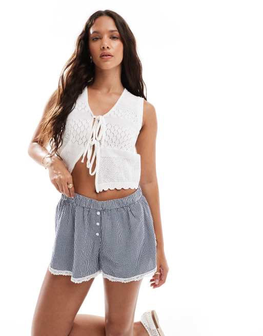 Brave Soul - Gebreide gilet met gestrikte voorkant en ajourgebreid detail in wit