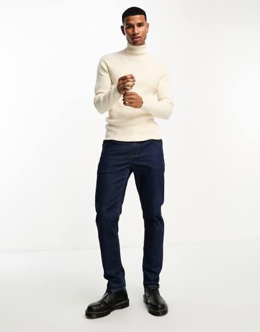 Brave Soul - Geribbelde coltrui van katoen in lichtbeige