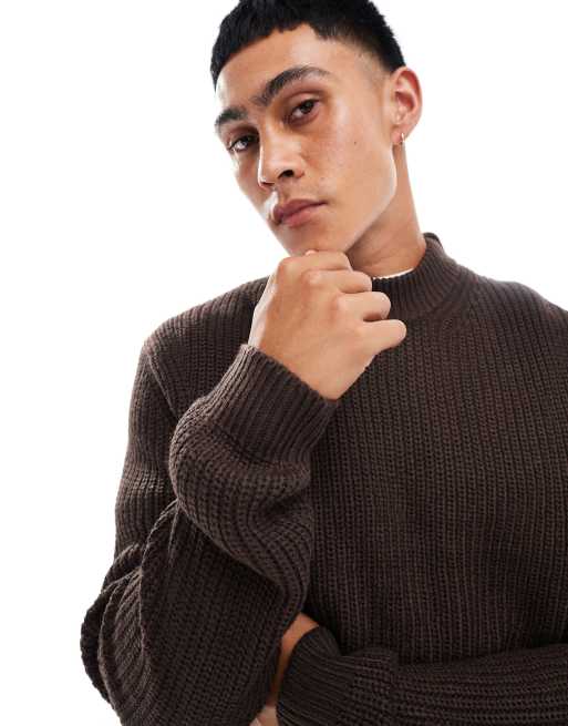 Brave Soul - Grofgebreide coltrui in chocoladebruin