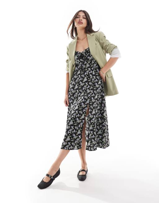 Brave Soul - Jurk met gestrikte voorkant in zwart met bloemenprint