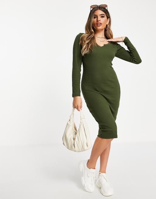 Brave Soul - Jurk met lange mouwen en hals met inkeping in kaki