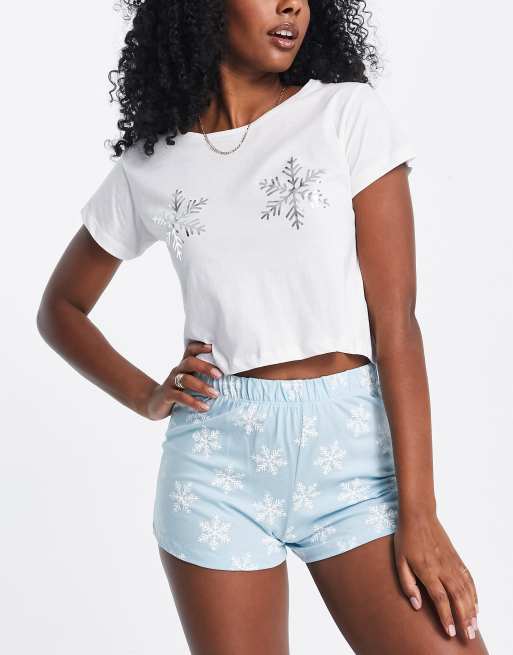 Brave Soul - Korte pyjama met sneeuwvlokken van folie in wit en blauw