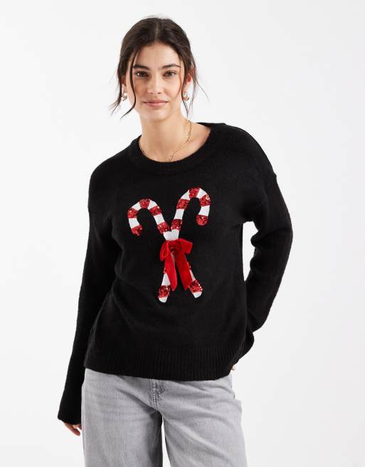 Brave Soul - Oversized kersttrui met zuurstokmotief met lovertjes in zwart