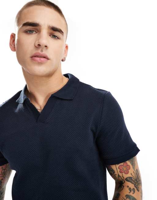 Brave Soul - Polo van zware stof met textuur in marineblauw, deel van co-ord set