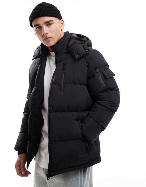 Brave Soul - Regenbestendig gewatteerd jack met afneembare capuchon in zwart