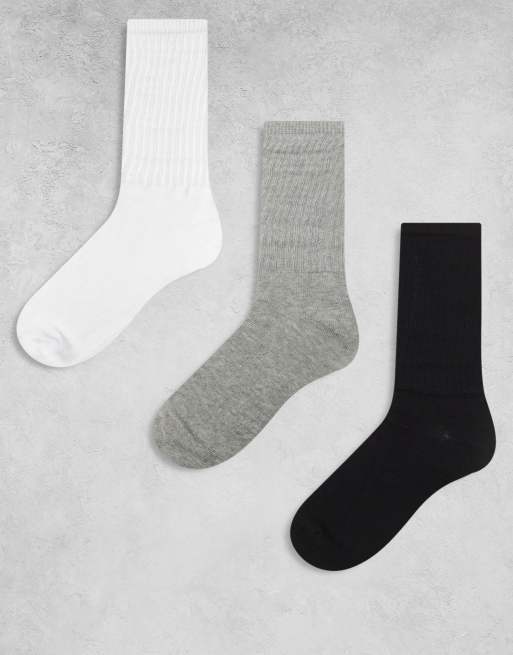 Brave Soul - Set van 3 paar ruimvallende sokken in zwart, grijs en wit