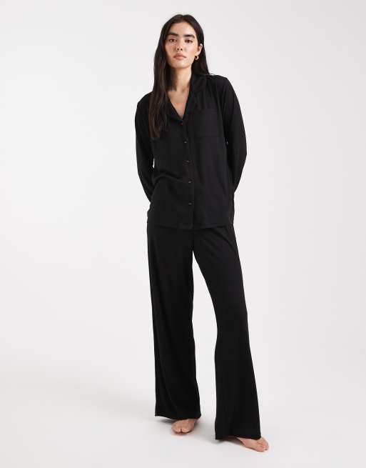 Brave Soul - Superzachte pyjamaset met overhemd met knoopsluiting en broek in zwart