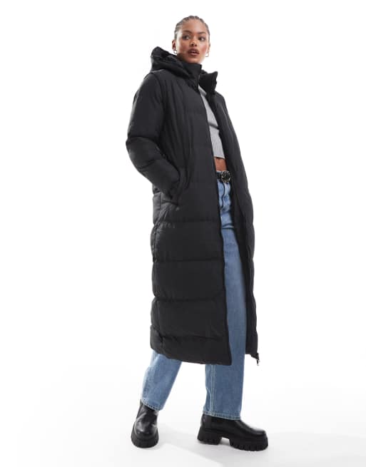 Brave Soul Tall - Gewatteerd lang jack met capuchon en afneembare mouwen in zwart