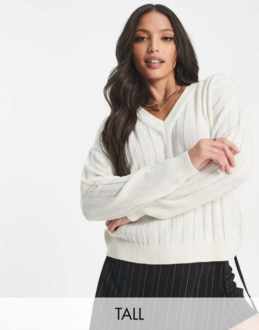 Brave Soul Tall - Kansas - Geribbelde trui met V-hals in crème