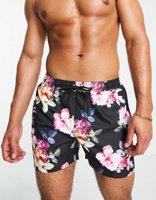 Brave Soul - Zwemshort in zwart met bloemenprint