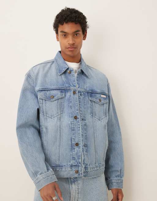 Calvin Klein Jeans - 94 - Jaren 90-stijl truckerjack met logo in lichtblauw met wassing