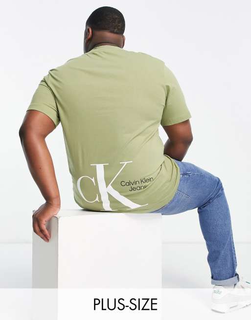Calvin Klein Jeans - Big & Tall - T-shirt met rechte pasvorm en dynamische logoprint op de achterkant in kaki