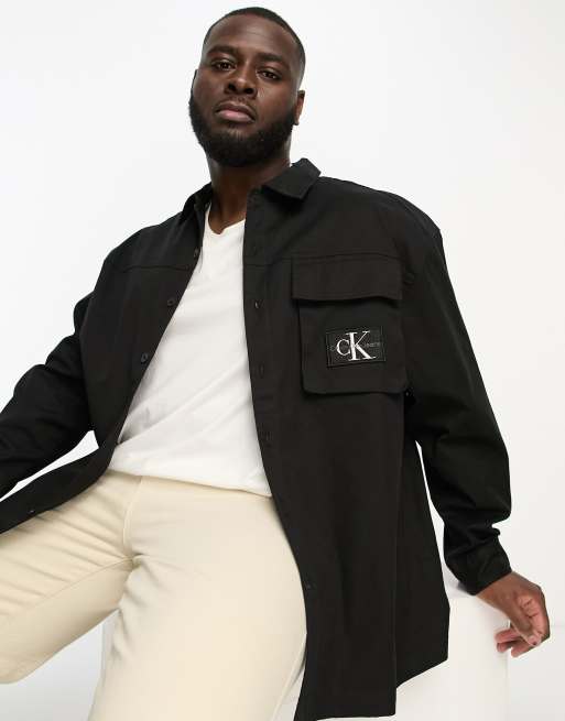 Calvin Klein Jeans - Big & Tall - Utility overshirt met zak en logo in zwart