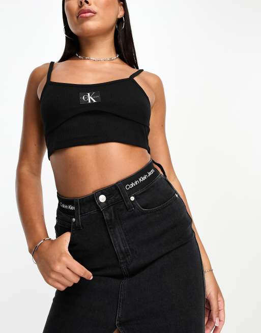 Calvin Klein Jeans - Bralette-topje met badge en ribbels in zwart