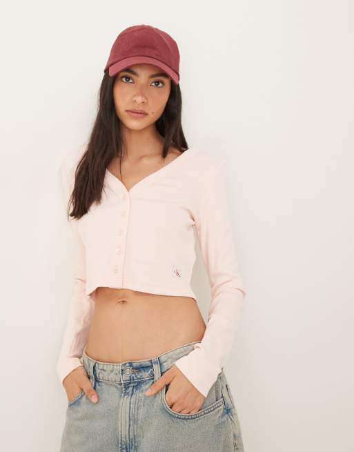 Calvin Klein Jeans - Crop top met lange mouwen, knopen en logo in roze