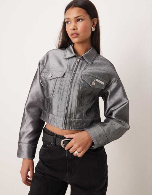 Calvin Klein Jeans - Metallic denim truckerjack met dubbele rits in grijs
