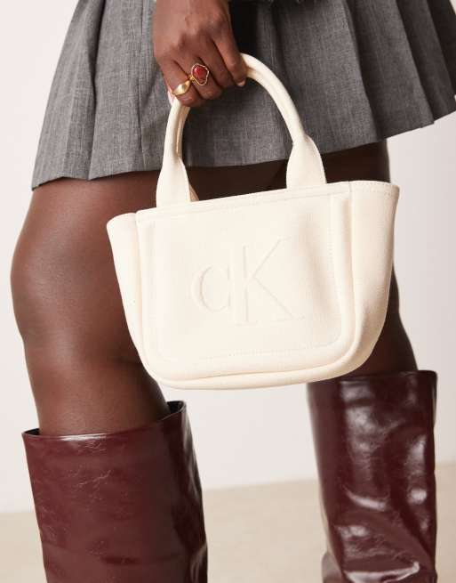 Calvin Klein Jeans - Mini tote tas van canvas in gebroken wit