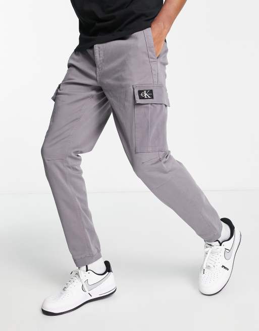 Calvin Klein Jeans - Skinny cargobroek met wassing in grijs