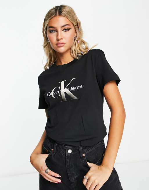 Calvin Klein Jeans - T-shirt met monologo met kleurverloop in zwart