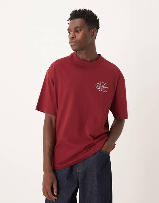Calvin Klein Jeans - T-shirt met omlijnd monologo in bordeauxrood