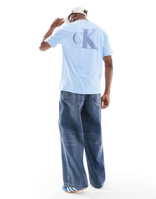 Calvin Klein Jeans - T-shirt met vetgedrukt CK-logo in lichtblauw