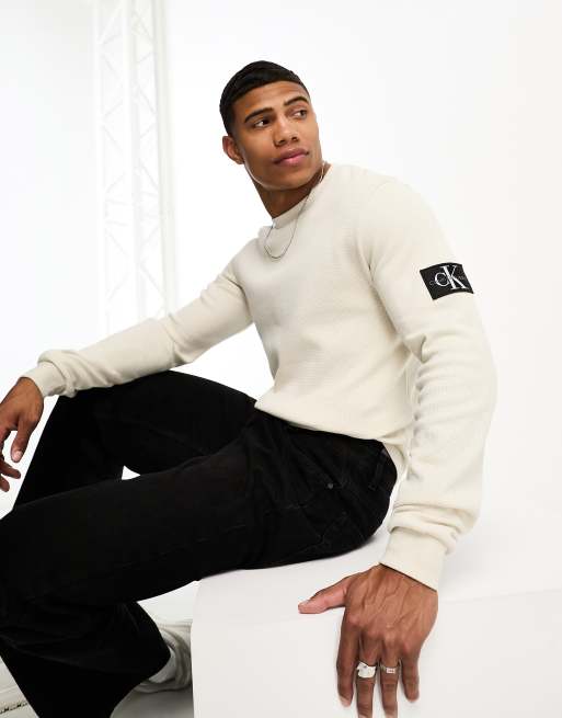 Calvin Klein Jeans - T-shirt van wafelstof met lange mouwen in beige