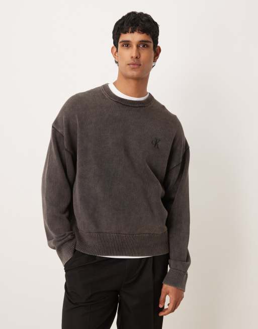 Calvin Klein Jeans - Trui met ronde hals in zwart met wassing