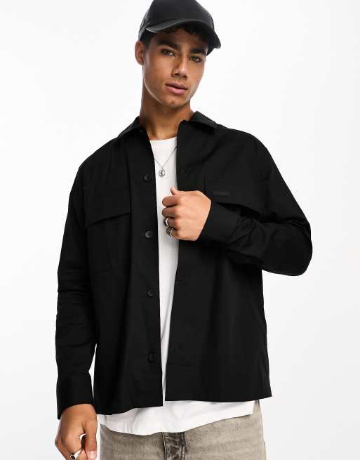 Calvin Klein - Boxy overhemd van popeline met stretch in zwart