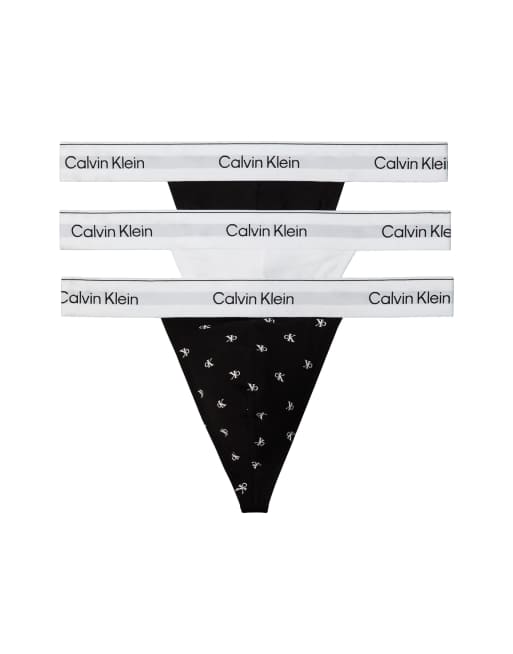 Calvin Klein - Icon - Set van 3 strings van stretchkatoen in zwart/patroon/wit