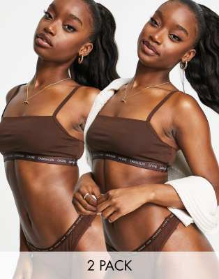 Calvin Klein Plus - CK One - Set van 2 ongevoerde bralettes met logo in omber